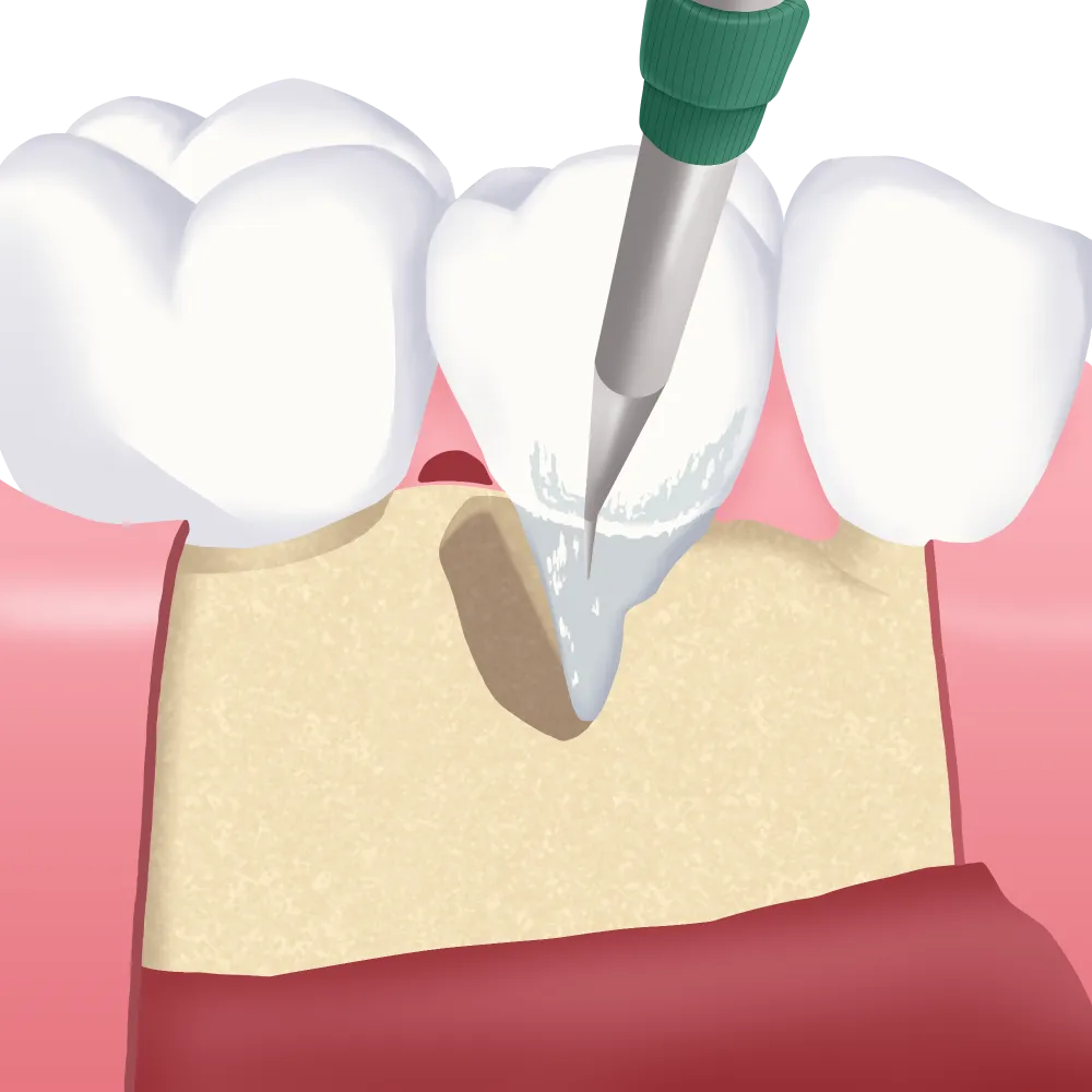 また、家庭でのケアでは取り除けない歯石を除去し、細菌に汚染された歯の表面(歯根表面)を清掃して滑らかにします。これにより、炎症を起こしている歯周組織が治癒しやすい環境を整えます。